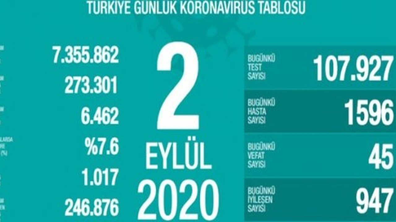 2 EYLÜL KORONAVİRÜS TABLOSU