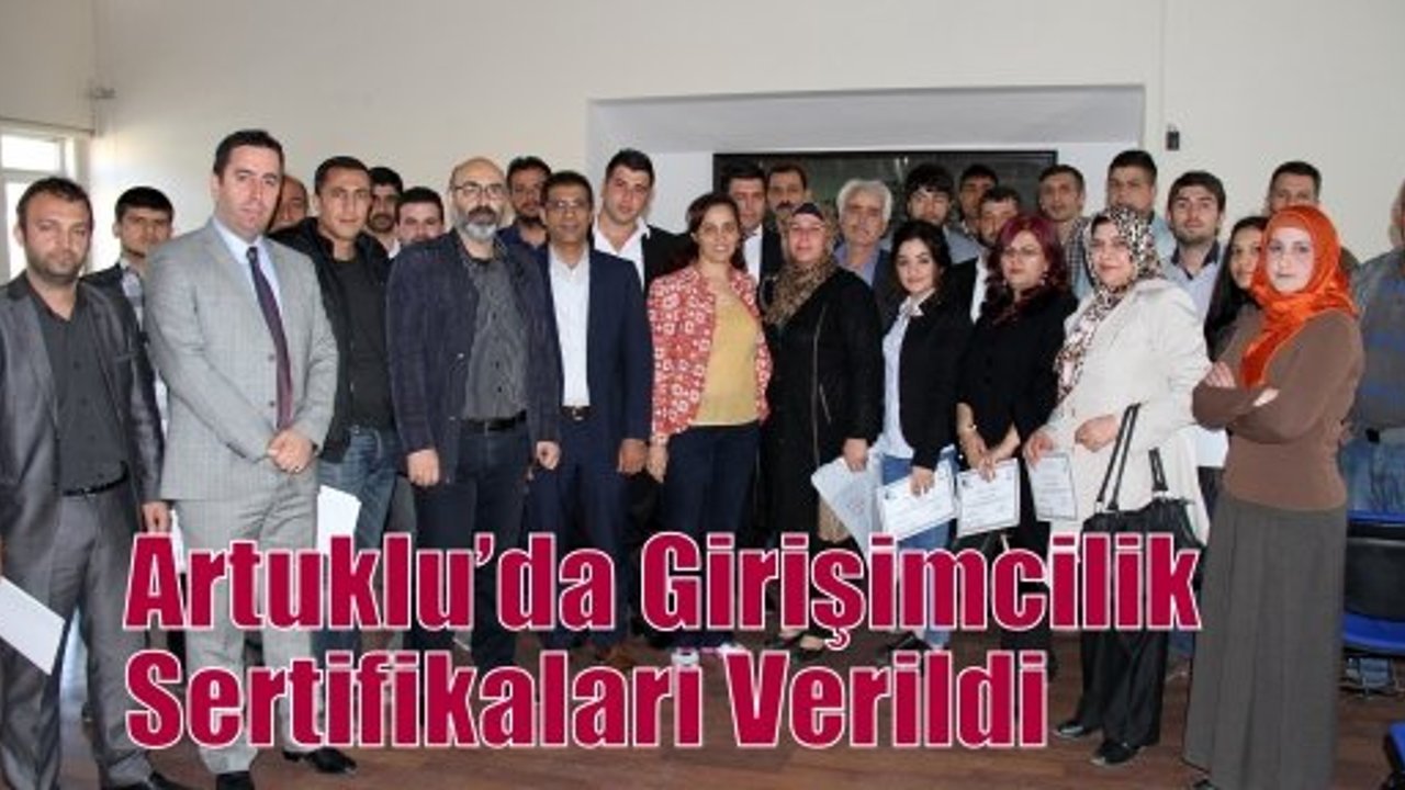Artuklu Belediyesi ile Küçük ve Ortak Ölçekli İşletmeleri Geliştirme ve Destekleme İdaresi Başkanlığı’nın (KOSGEB) ortaklığında 2 ay süren “Uygulamalı Girişimcilik Eğitimi” kursu tamamlandı. Kursiyerler için Artuklu Belediyesi Meclis Toplantı Salonu’nda yapılan törene Artuklu Belediyesi Eş başkanları Sevinç Bozan ve Emin Irmak, Başkan Yardımcısı Mehmet Hadi Baran, Kurs öğretmeni Doç. Dr. Hüseyin Haşimi Güneş ile kursiyerler katıldı. Törende konuşma yapan Eş Başkan Emin Irmak, girişimcilik eğitimi kursunu tamamlayan kursiyerlere her zaman destek vereceklerini ifade ederek, sürekli diyalog halinde olacaklarını söyledi. Daha sonra konuşan kurs öğretmeni Hüseyin Haşimi Güneş ise, kursiyerlerden şimdiye kadar 18 kişinin projelerini tamamladıklarını belirterek, diğer kursiyerlerin de kısa bir süre içerisinde projelerini hazırlayacaklarından emin olduğunu kaydetti. Güneş, 60 kişinin kurslarını tamamladıklarını ve onlara sertifika hazırladıklarını dile getirdi.