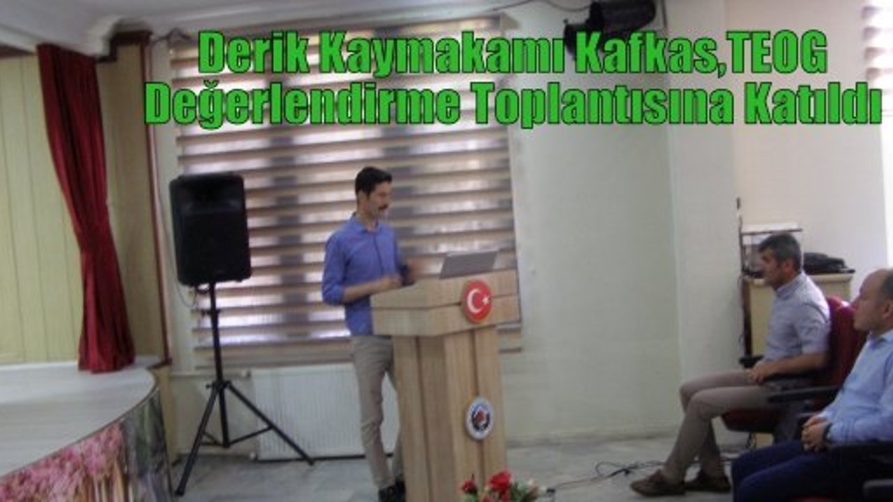 Mardin'in Derik İlçesi'inde 2016-2017 Eğitim Öğretim dönemi'nde Temel Eğitimden Orta öğretime Geçiş (TEOG) Sınavı sonuçlarını değerlendirme toplantısı, Derik Kaymakamı ve Belediye Başkanvekili Hakan Kafkas başkanlığında, İlçe Milli Eğitim Müdürü Mustafa Kahraman, Şube MüdürüSu lhaddin Bahtiyaroğlu ile ortaokullar ve liselerin müdürleri ve rehber öğretmenlerin katılımıyla, Aydın Ayaydın Öğretmenevi konferans salonunda sunumu yapıldı.