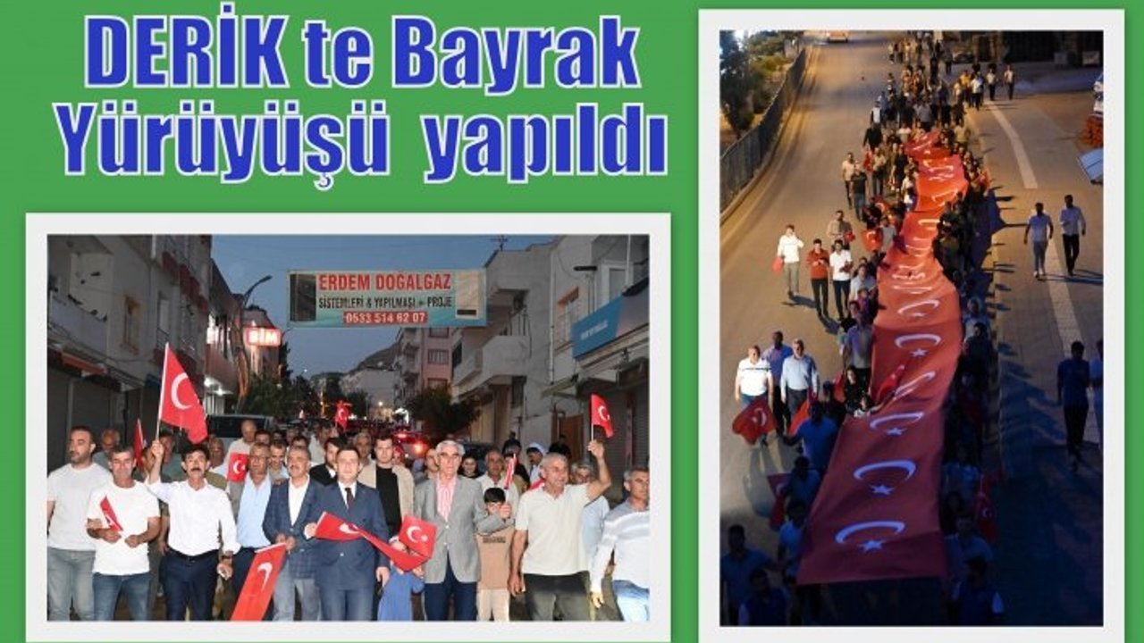 İlçe protokolü İle binlerce vatandaşın katıldığı Geniş ve Uzun Bayrak yürüyüşü Hükümet Konağından başladı DERİK Kaymakamlığı Kültür Merkezi’ne kadar devam etti. Vatandaşlardan meydana gelen görkemli bir kalabalığın katılım sağladığı programa gece geç saatlerine kadar devam edildi.