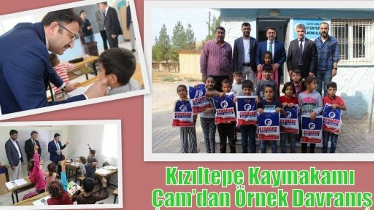 Kaymakam Hüseyin Çam, Kızıltepe’de göreve başladığı ilk gün tebrik için kendisine gönderilecek olan çiçekler yerine, ihtiyaç sahibi öğrencilere kırtasiye malzemeleri alınmak üzere bağış yapılması çağrısında bulunmuş ve bu çağrı neticesinde hayırsever vatandaşlar Abdulkadir Eryılmaz, Ahmet Kılıç, Ali Özmen, Ayşegül Yıldırım, Aziz Akbal, Bahar Yıldız, Can İlhan, Fatma Betül Çoban, Funda Aydın, Hatip Şeran, M. Yaşar Akdağ, Mahmut Timur, Mehmet Eroğlu, M. Nurullah Özken, Musa Aras, Siraç Duyan, Sitam Tarhan, Sultan Özer, M.Şerif Öter, Şükrü Cevheroğlu, Zeki Bahadır ve Kızıltepe Ticaret ve Sanayi Odası ile Kızıltepe Zahireciler Derneğinin bireysel ve kurumsal bağışları ile 550 öğrenciye kırtasiye malzemeleri alındı. Alınan kırtasiye malzemelerinin ilk kısmı ilçe Kaymakamı Hüseyin Çam, İlçe Milli Eğitim Müdürü Ahmet Aslan tarafından ihtiyaç sahibi öğrencilere dağıtıldı.