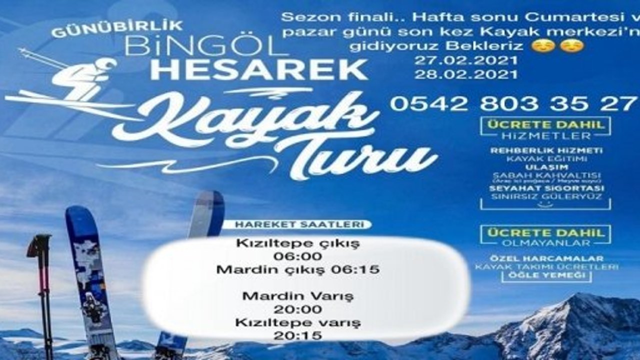 Kızıltepe ve Mardin’den Bingöl Haserek’e  kayak merkezine turlar 27 ve 27 şubat tarihinde yapılacak.
