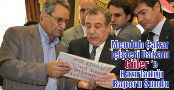 Kızıltepe Çevre Gönüllüleri Derneği Başkanı Menduh Çakar, İçişleri Bakanı Muammer Güler'e ilçe sorunlarıyla ilgili hazırladığı bilgi raporunu sundu.